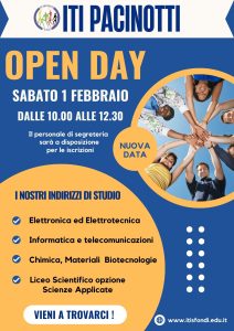 "Vieni a scoprire la tua futura scuola! Open Day un'occasione unica per conoscerci da vicino."